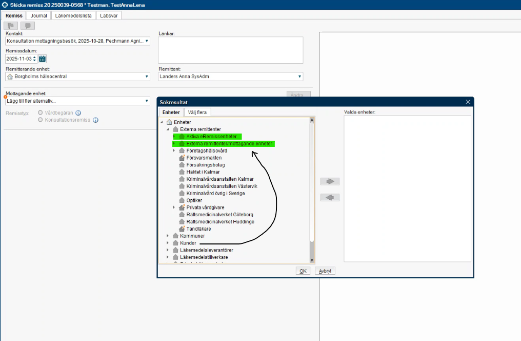 Den 1 december flyttas mapparna "Aktiva e-remissenheter" och "Externa remittenter/mottagande enheter" till mappen "Externa remittenter". Detta utförs för att förtydliga och förenkla enhetsstrukturen.