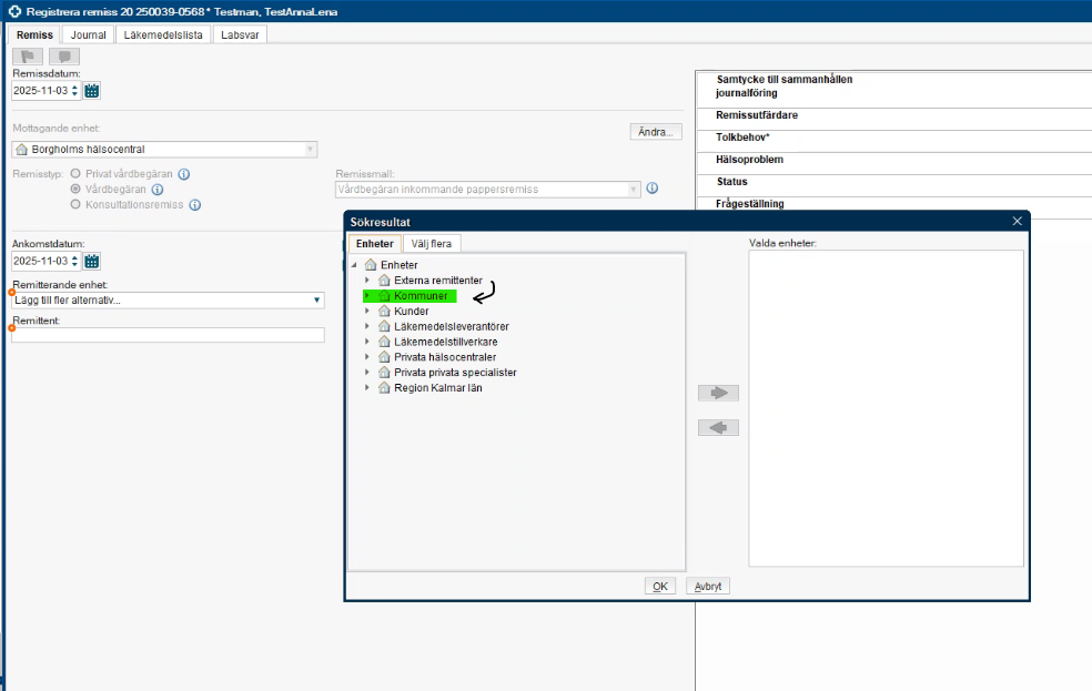 Från och med den 15 december finns följande enheter att välja på som mottagare av elektronisk remiss: